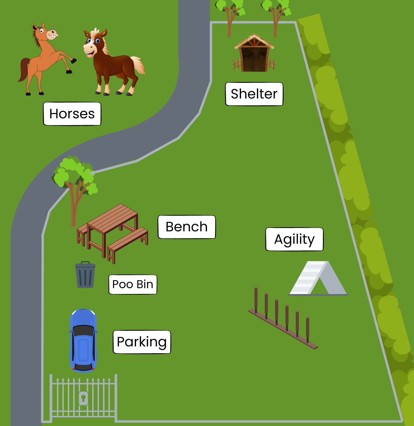 The field is equipped with water bowls, a picnic bench, shelter, and a poo bin for your convenience. Adjacent to the field are horses, which can be a delightful sight for your furry friend. The field is accessible from the main road and provides ample parking space inside the secure area. Please note that floodlights are not available on the premises.